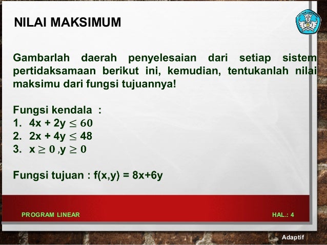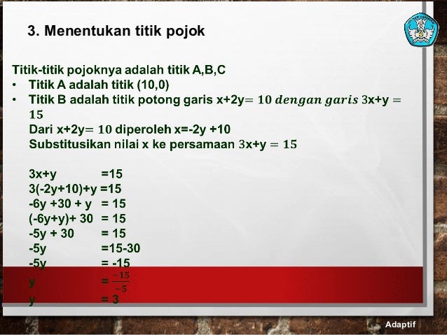Program Linear Menentukan Nilai Optimum Suatu Fungsi Objektif Dengan Menggunakan Metode Uji Titik Pojok Pendidikan Matematika from yos3prens.files.wordpress.com Check spelling or type a new query. We did not find results for: Maybe you would like to learn more about one of these?