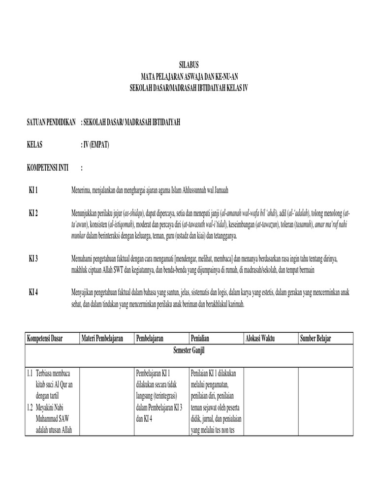 Silabus Aswaja Mts K13 - Silabus Dan Rpp Ke Nu An Silabus Rpp - Silabus yang akan saya bagikan ini berisi 14 mata pelajaran yang diajarkan pada jenjang madrasah tsanawiyah.